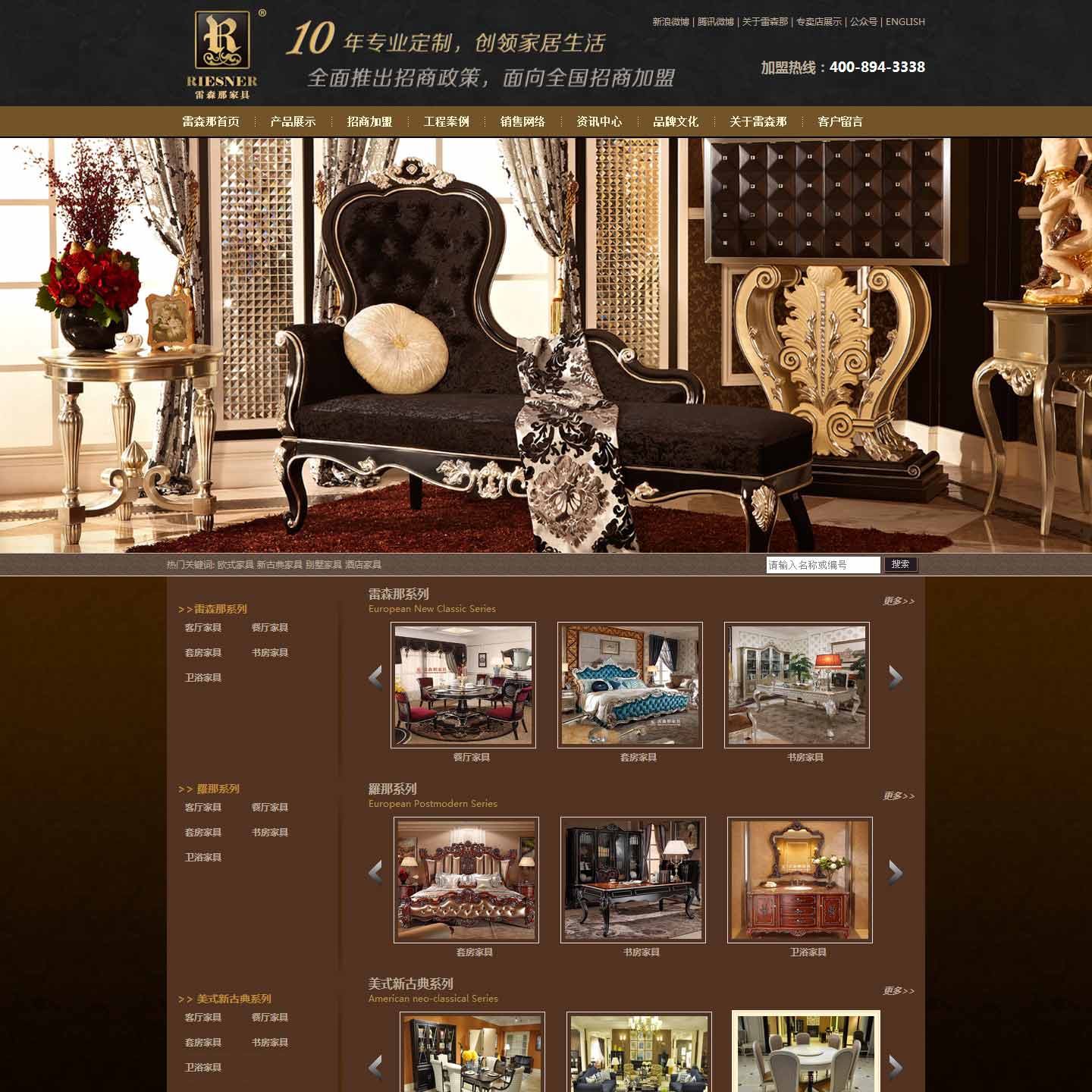 佛山市雷森那家具有限公司简称“雷森那·缔造高端欧美家具品牌新典范——源自欧洲皇室的家具设计理念。