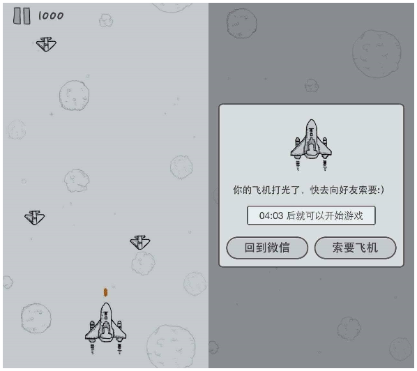 因为社交关系的引入,「打飞机、晒战绩」的方式很快风靡了朋友圈,从那之后,受到《经典飞机大战》的启发,H5 游戏开始在微信生态里流行。